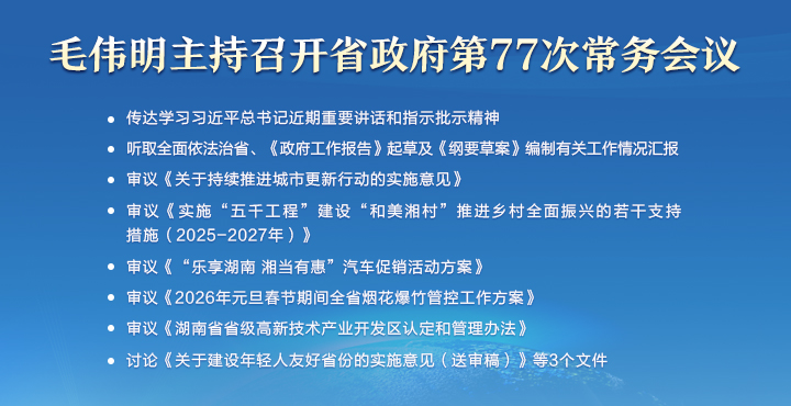 • 毛偉明主持省政府第76次常務會議 部署湖南自貿試驗區建設、國有金融資本管理等